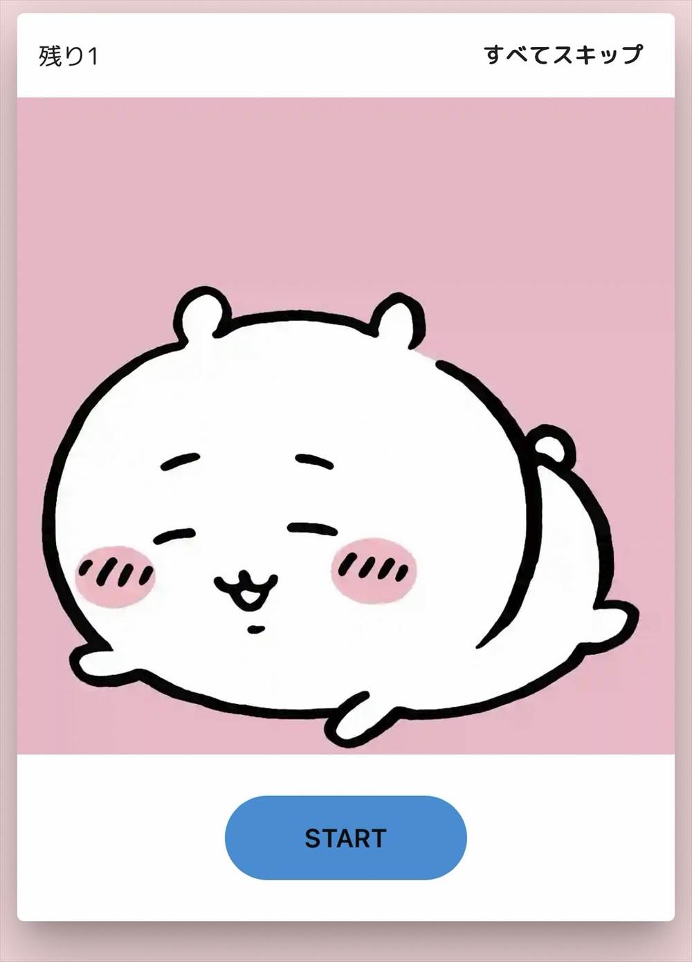 「START」をタップすると、ちいかわ&ハチワレのアニメーションが流れます。