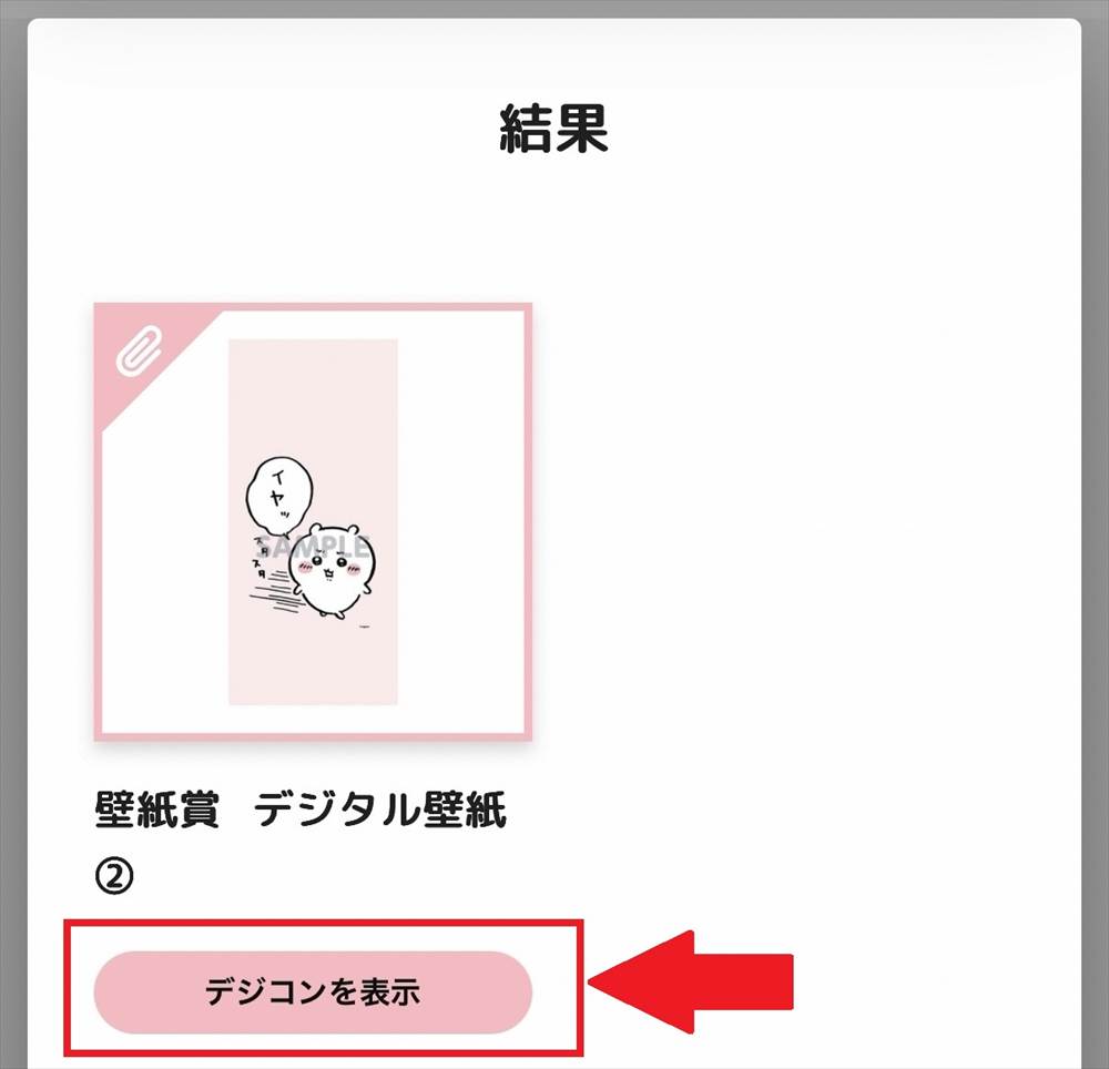 当たった壁紙は「デジコンを表示」ボタンをタップすると、画像が表示されます。