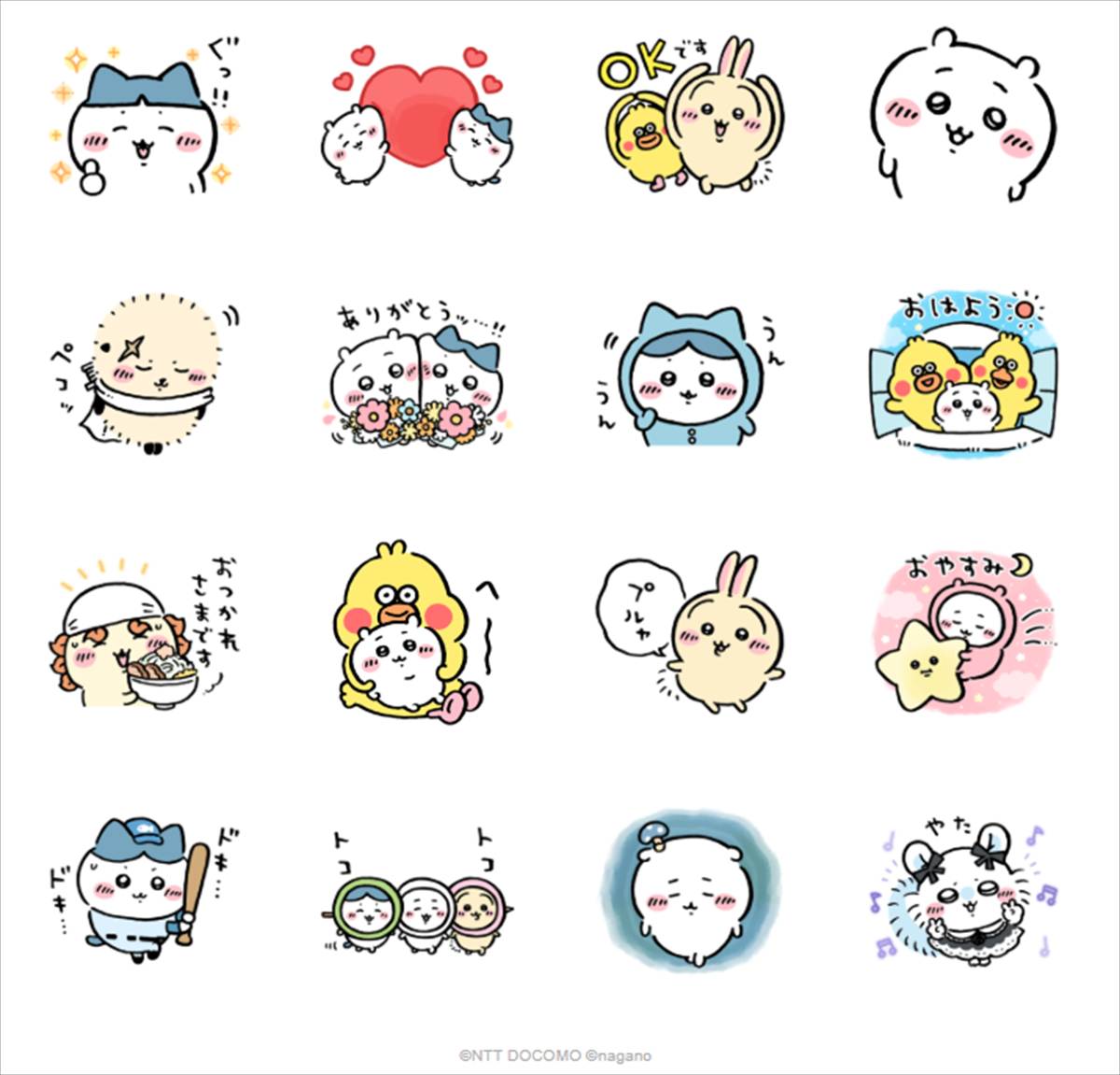 使いやすい挨拶スタンプはもちろん、ポインコとうさぎが同じポーズをしていたり、ちいかわたちがお花見団子になっていたりとユニークなスタンプもたくさん!