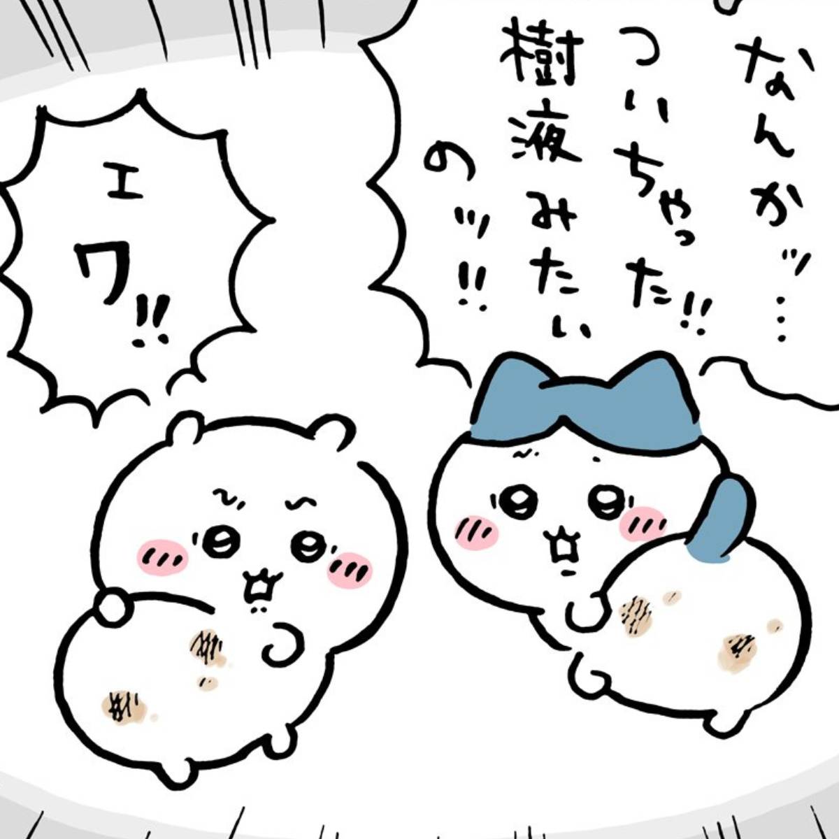 【2025年12月03日更新】大きな樹の下でまったりしていたちいかわとハチワレ。立ち上がった瞬間、なんとおしりに樹液みたいなものがべったり!慌てる2人でしたが、ハチワレがとった行動は……まさかの!?