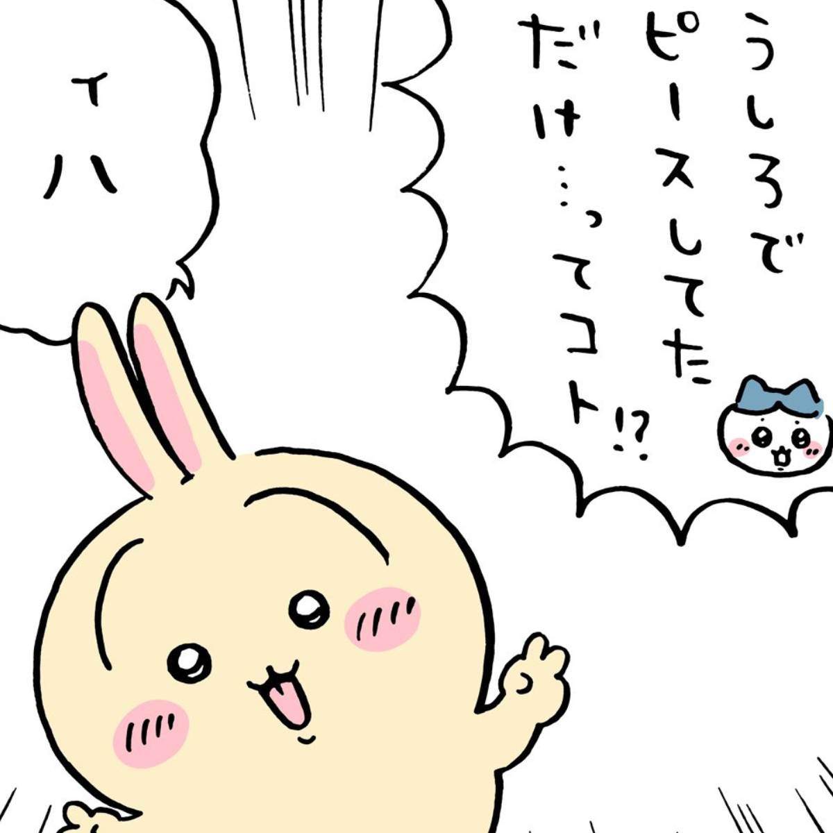 ちいかわも、写真とうさぎの手を交互に見比べて固まっちゃった…。