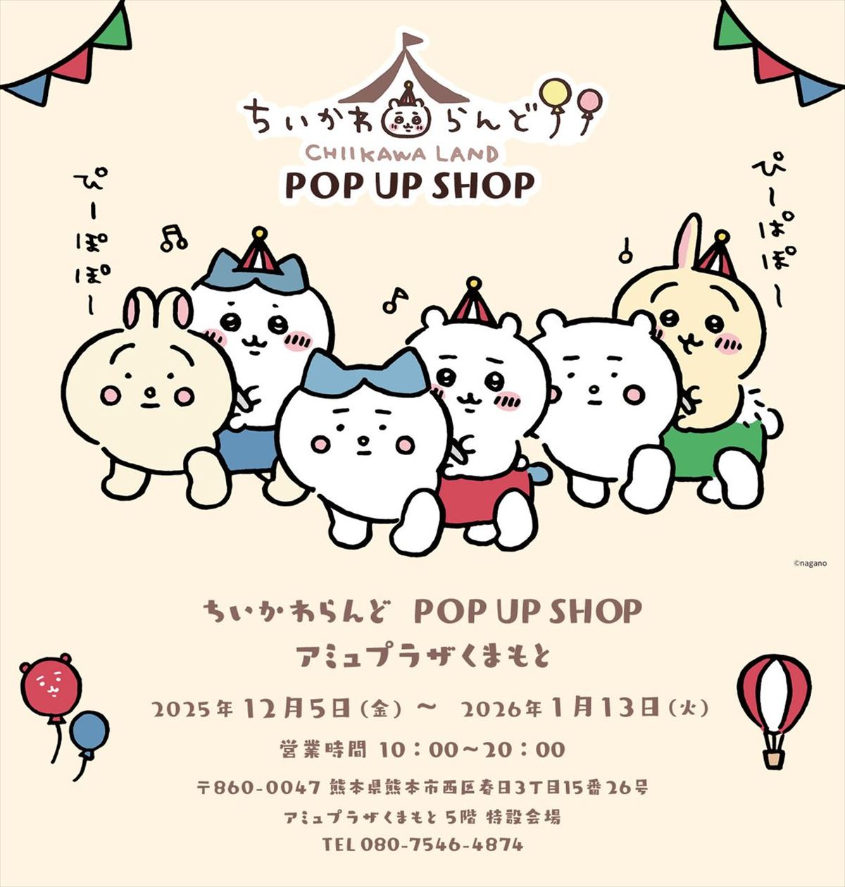 【熊本】「ちいかわらんど POP UP SHOP」12月5日からアミュプラザくまもとにて開催!
