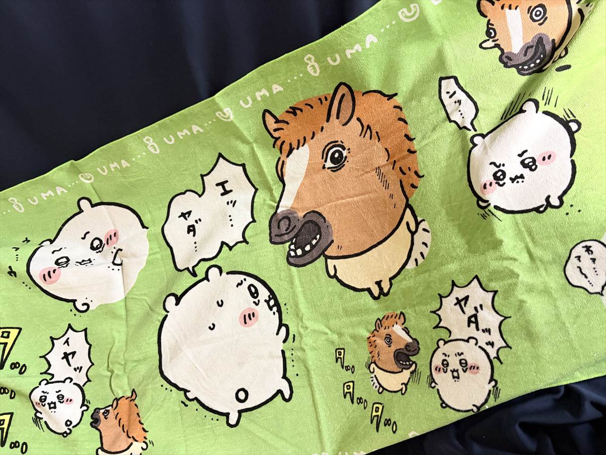 ちいかわが謎の馬(!?)に追いかけられている個性的過ぎるバスタオルが入ってました!