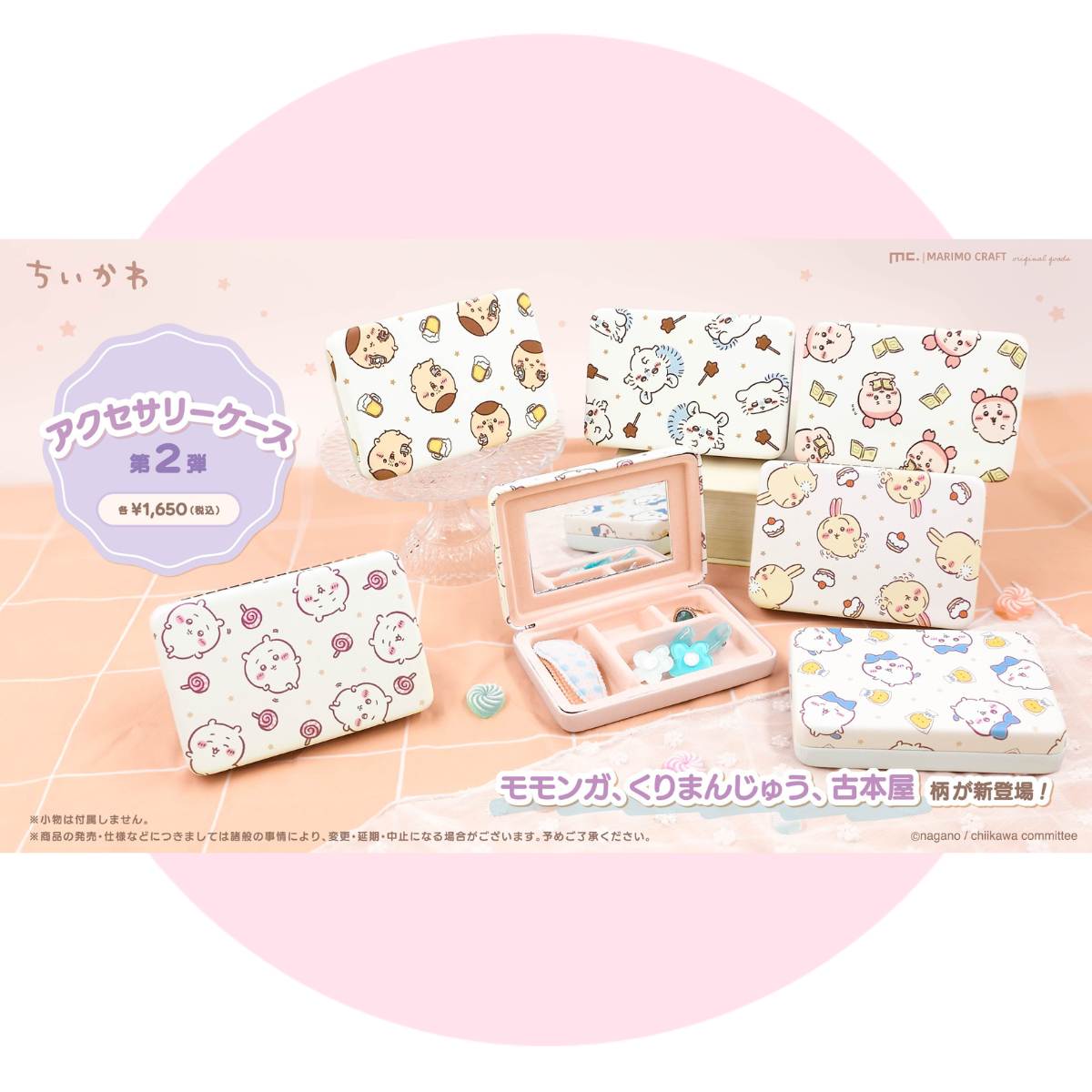 ちいかわのアクセサリーケース第2弾が新登場。今回はモモンガ、くりまんじゅう、古本屋が仲間入りです。大切なアクセサリーをかわいく収納できるアイテムです。
