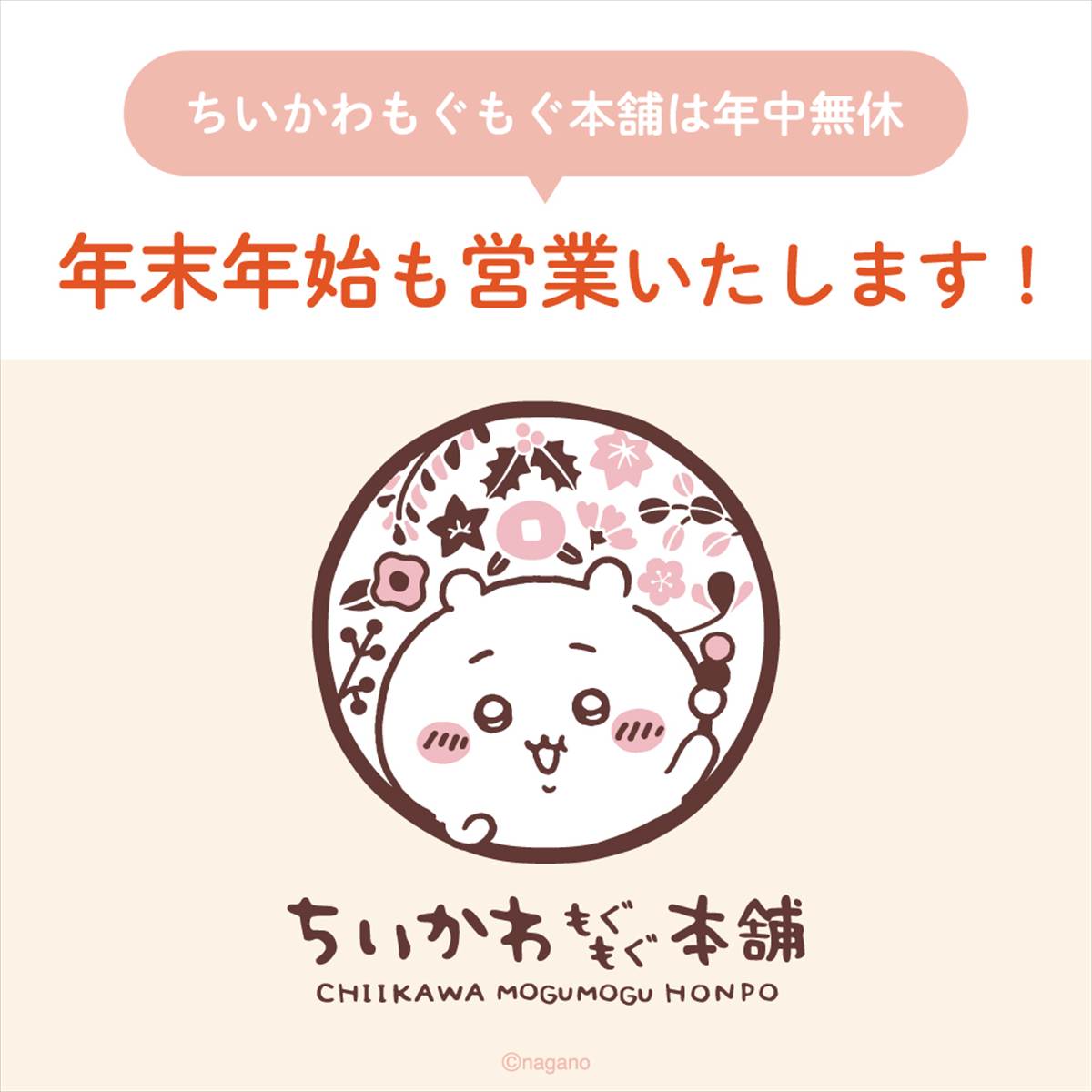 ちいかわの和風ショップ「ちいかわもぐもぐ本舗」は、年末年始も変わらず営業予定とのこと。年中無休なので、いつ行っても開いているのは嬉しいポイントですね♪