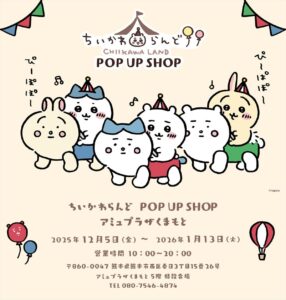 • 【熊本】「ちいかわらんど POP UP SHOP」12月5日からアミュプラザくまもとにて開催!
